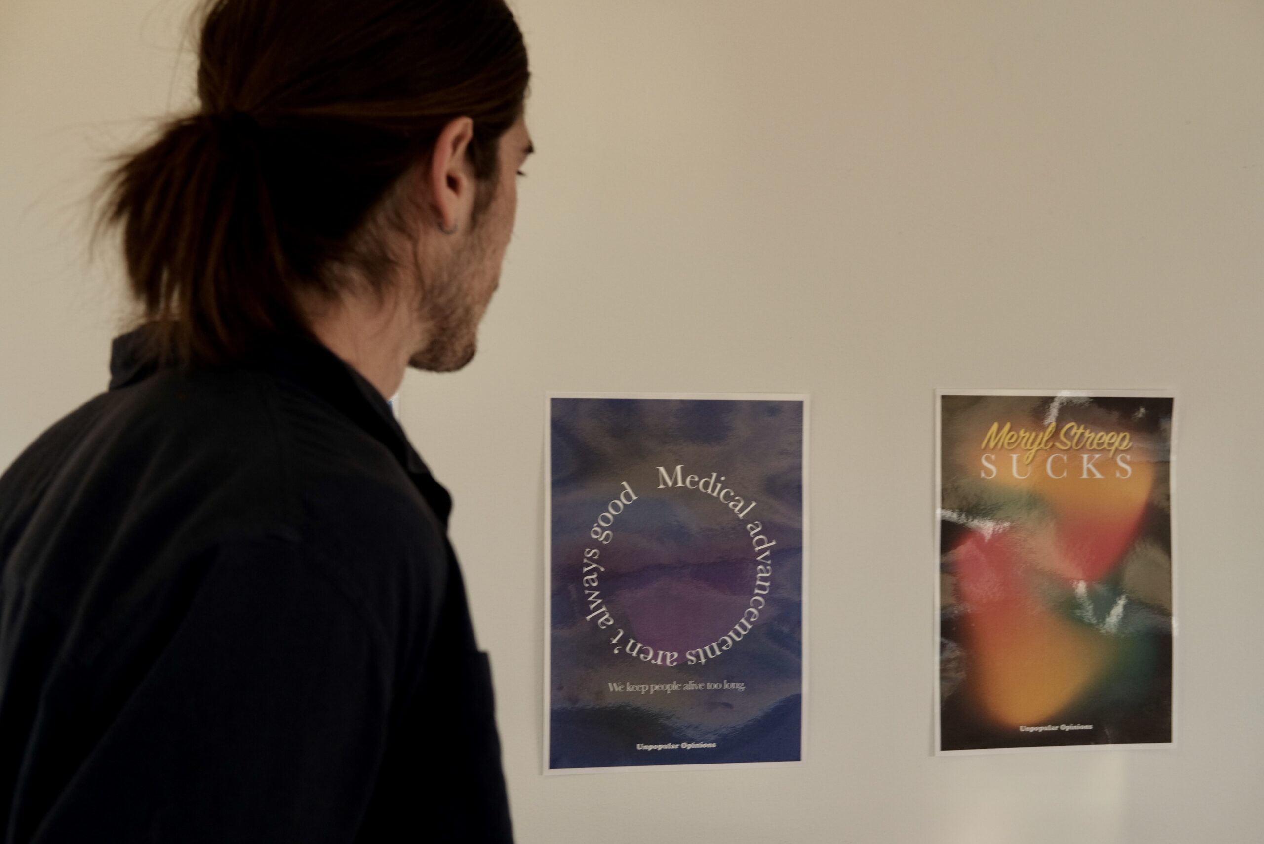 Unpopular opinions are defined as ideas and beliefs that go against or completely contradict the conventional and acceptable. These opinions may be kept hidden out of fear or shame. This work invites us to vocalize opinions that we believe we do not share with people around us. The artist solicited “unpopular opinions” anonymously on Bard Campus and then curated and designed a public display of these opinions as posters. This project questions the homogeneity of political and social opinions.